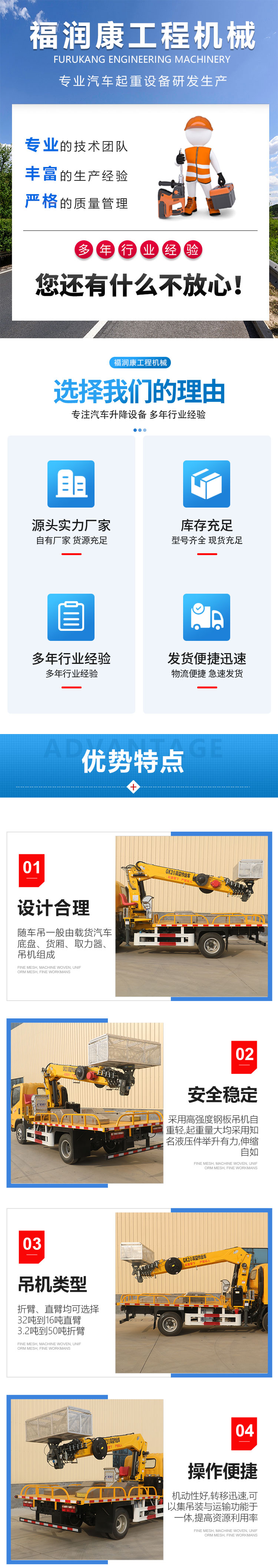 福润康蓝牌随车吊 高空随车吊